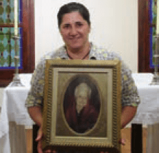 Estevilna Acosta con un cuadro de Dña. Lucilia